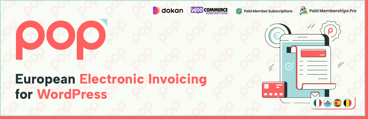 POP is the ultimate plugin for EU e-invoicing on WooCommerce, Paid Memberships Pro and Cozmos PMS.