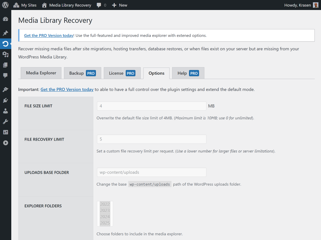 If you’re using the free version from WordPress.org and want Pro features, you can purchase the premium version on the Media Library Recovery Pro website.